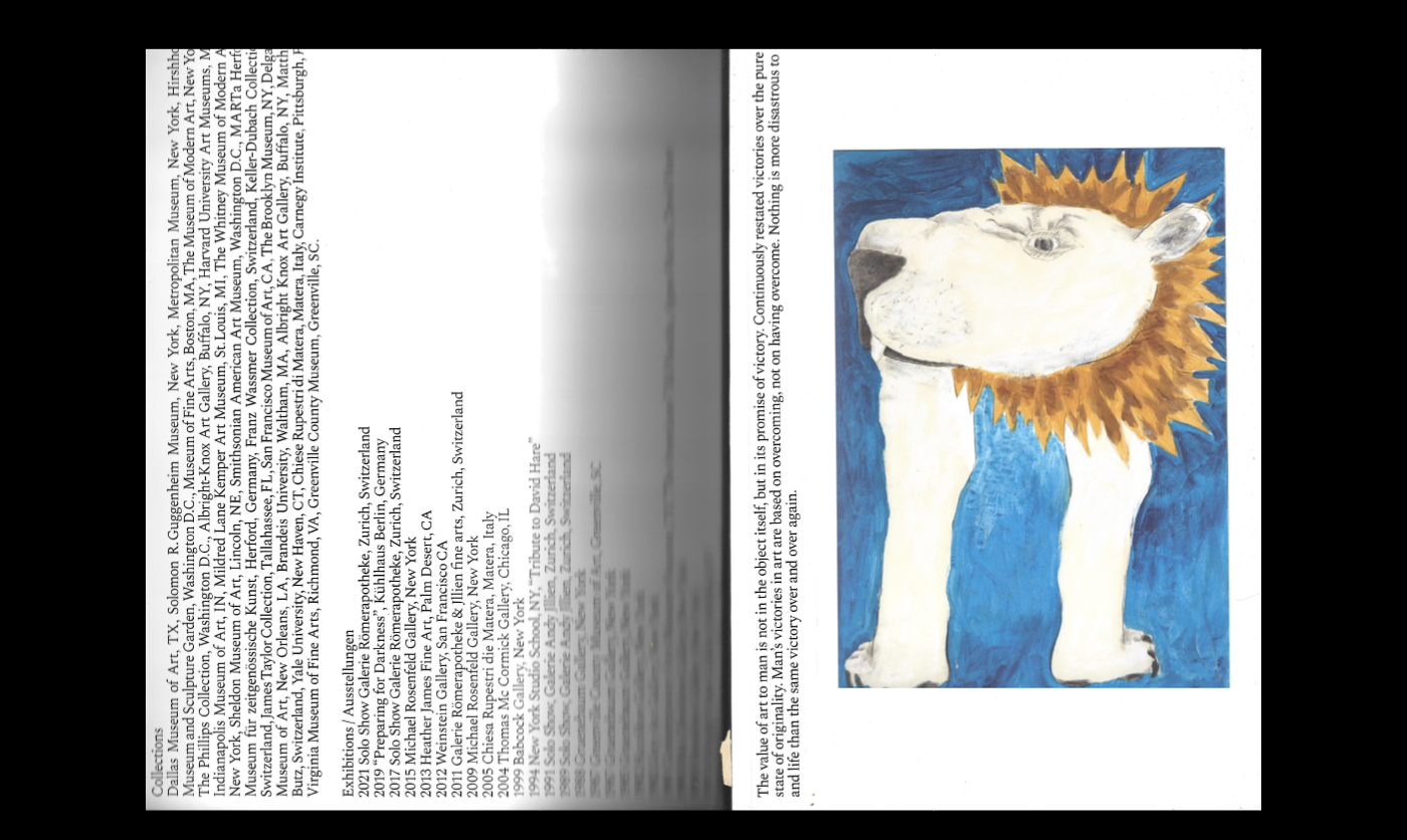 I love how the book is large, giving the paintings and illustrations room to breathe, with amazing use of color. The typography is also really interesting, the intro text size is consistent throughout, giving the feeling of continuous reading, like a conversation that explains the work smoothly.