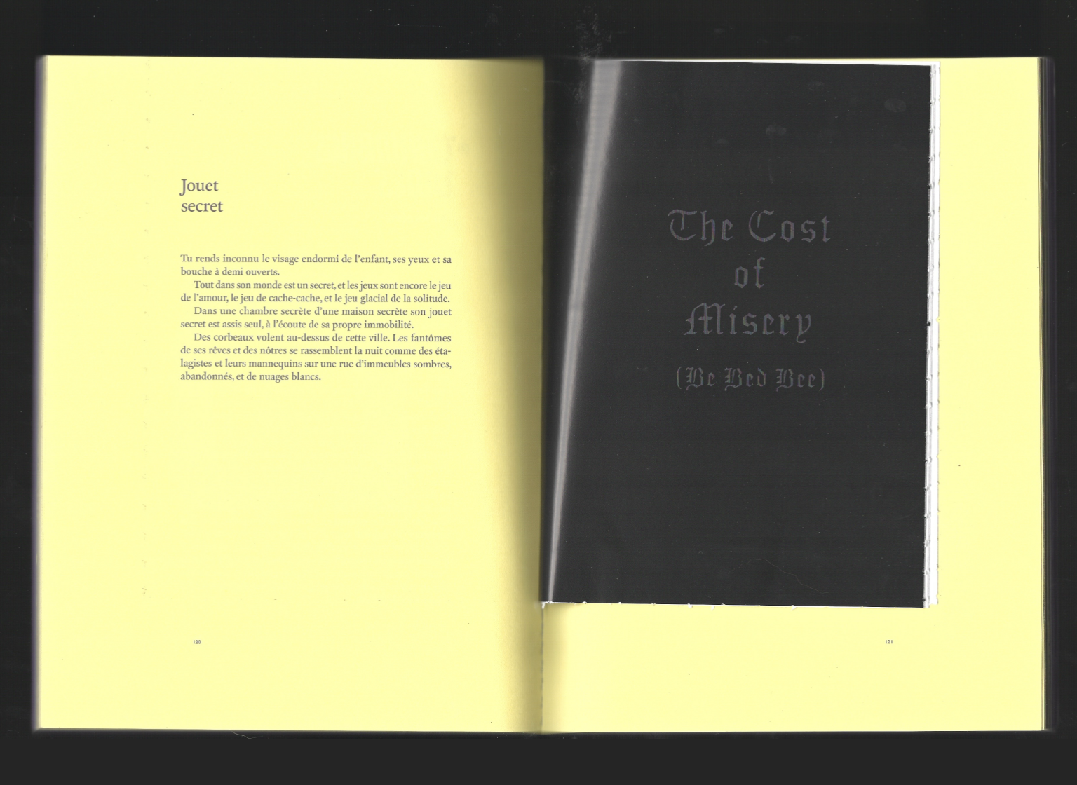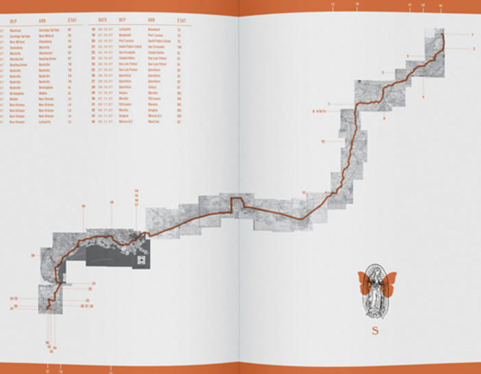 This book inspired me to create a book myself, following the same theme: a geopoetic book (guided by a map in a poetic way). Divided into three sections documenting a trip to Vegas, moments are collected, photos shared, and texts explain the journey. Each section has its own aesthetic while maintaining a cohesive universe throughout the book.