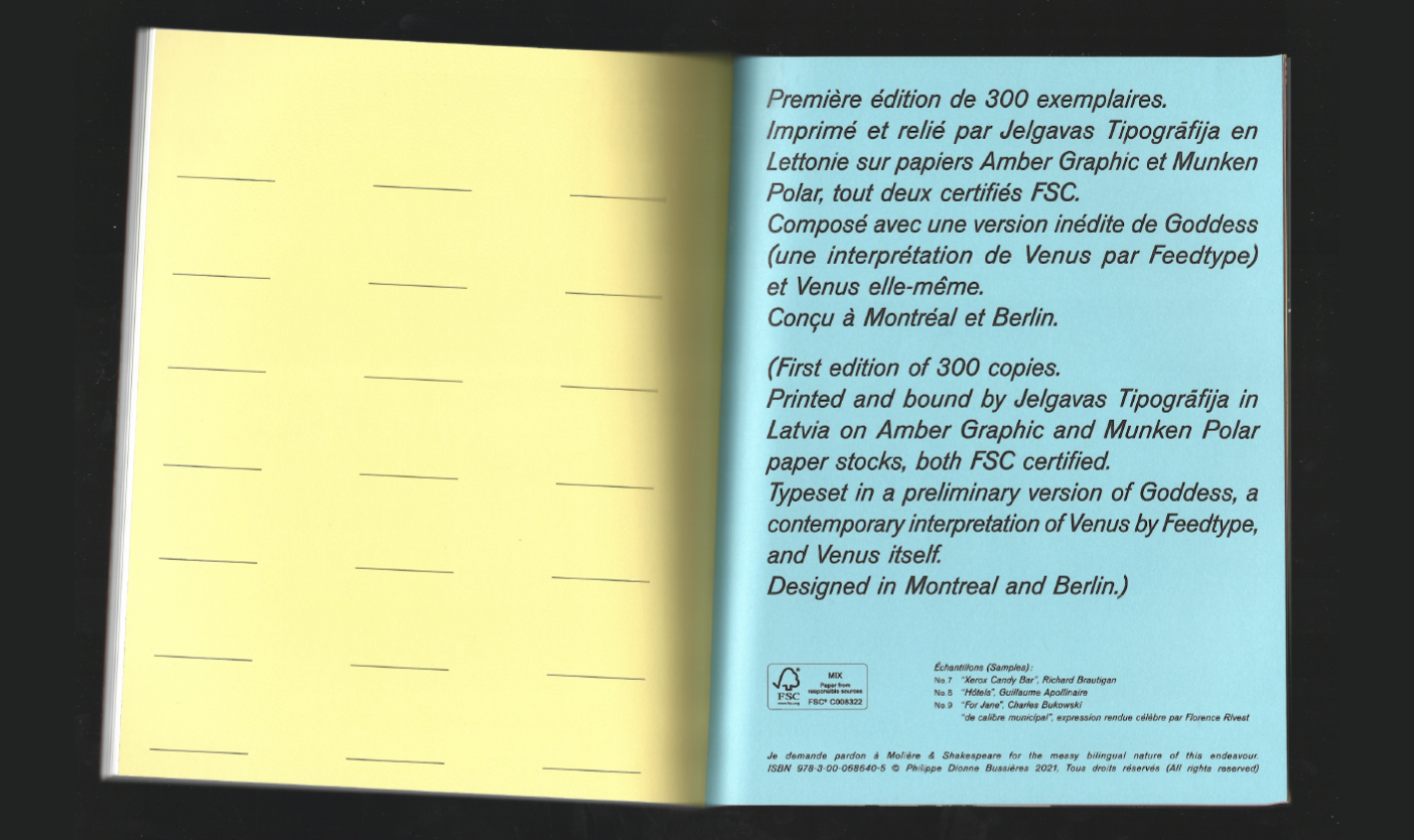 This one is truly special because it’s a gift from one of the Guestlibris I invited, Philippe Dionne Bussière. Unsurprisingly, I’ve been a fan of Philippe’s work for a long time — following his social media, he always shares pieces of graphic art playing with type and color. I was completely obsessed with every post. It’s exactly the kind of graphic designer’s experimentation that results in stunning work.