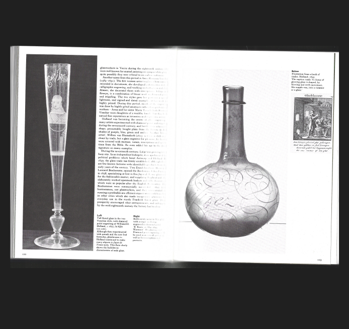 I’m still torn between finding this book beautiful or ugly, but what immediately drew me in was the imagery itself. The glasses are photographed with a striking elegance, placed against grayscale gradient backgrounds that give them a very chic presence. Each image seems to exist within its own grayscale atmosphere, as if the tonal shifts in the background are carefully tuned to each glass piece.
